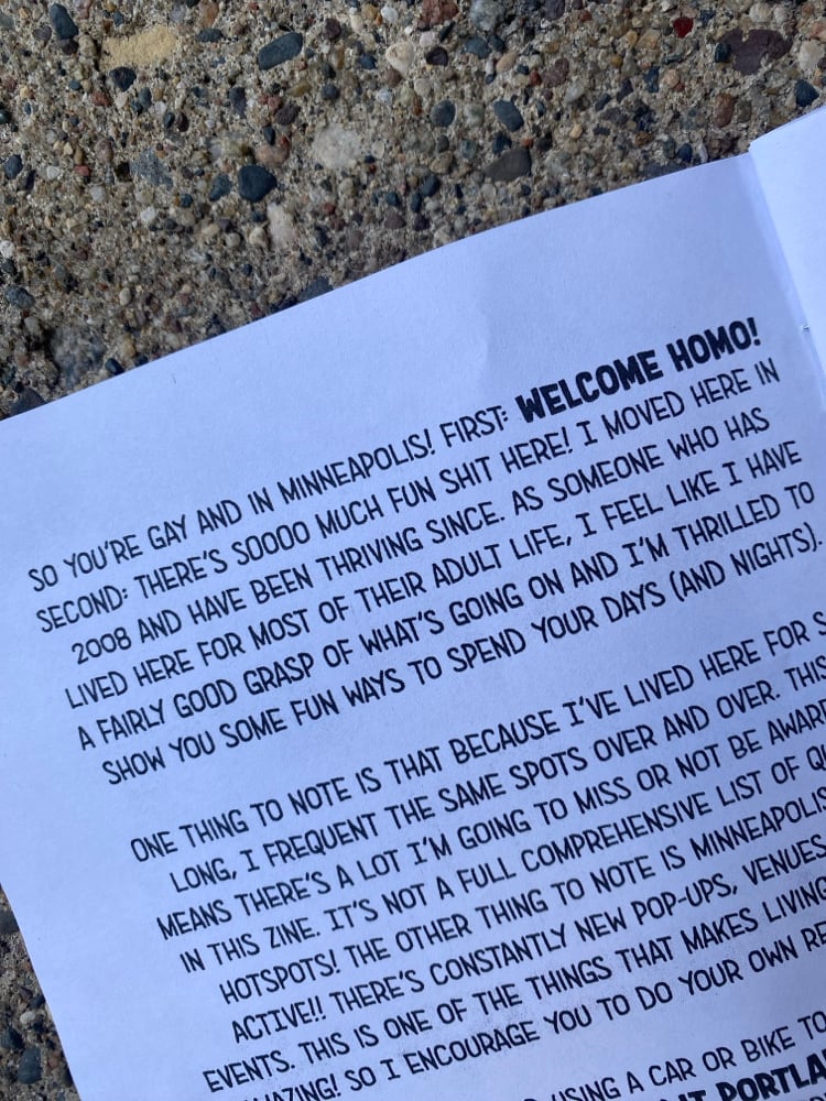Why trust Google when you could trust a fellow queer?!? 12 pages full of Minneapolis goodness, with suggested routes and lots of gay bars (but more than just gay bars). If you're LGBTQ and visiting the Twin Cities, be sure to grab this helpful guide!