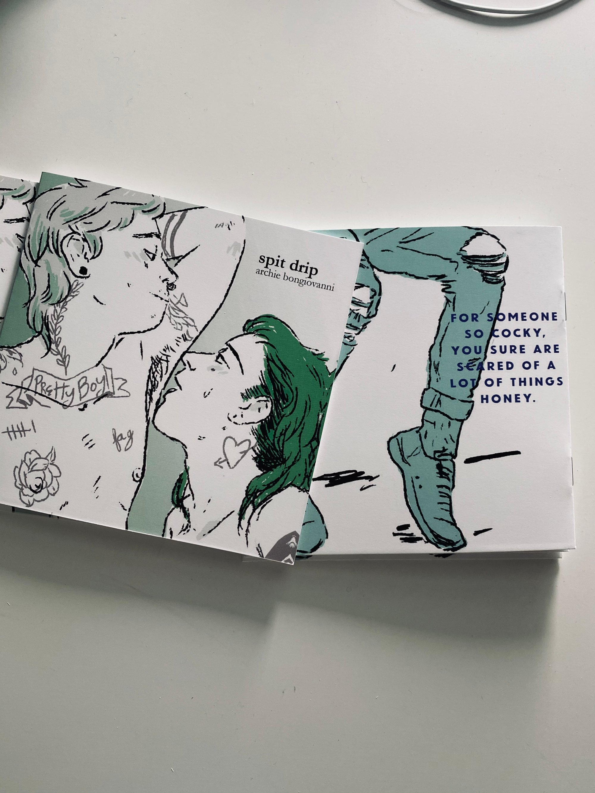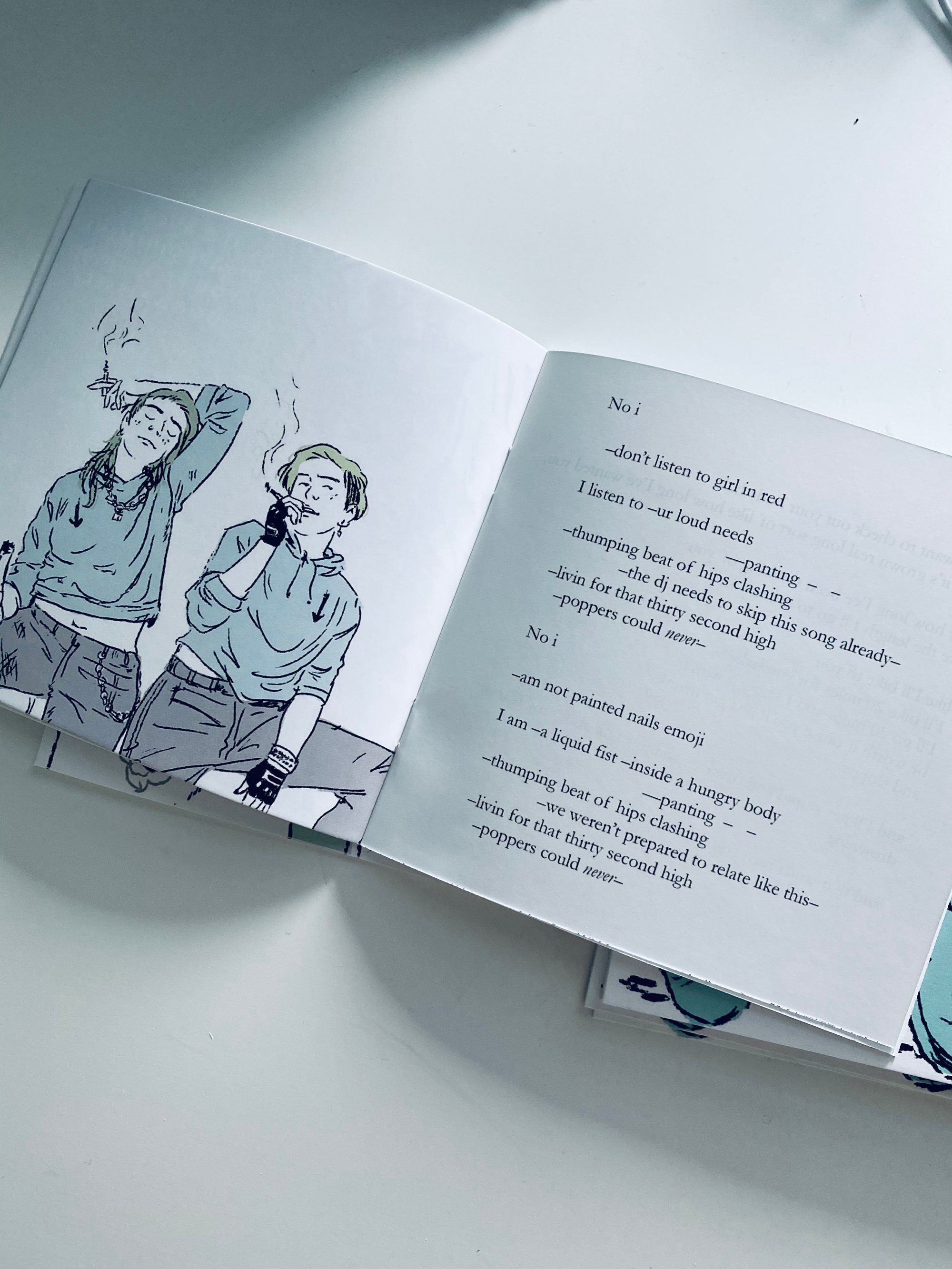 24 page zine, 5x5, full color! A mix of poems and art. Achingly horny.